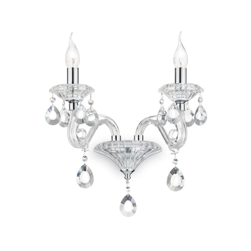 Перечислим технические характеристики Бра Ideal Lux Negresco AP2 Trasparente 141046. Тип цоколя — E14. Общая мощность лампы — 80 Ватт. Высота люстры — 252 мм. Степень защиты — IP20, что обеспечивает защиту от проникновения предметов размером более 12 мм и защиту от капель воды, падающих под углом более 15 градусов. Бра Ideal Lux Negresco AP2 Trasparente 141046 — часть коллекции Negresco Trasparente. Плафон люстры имеет форму и выполнен в цвете.