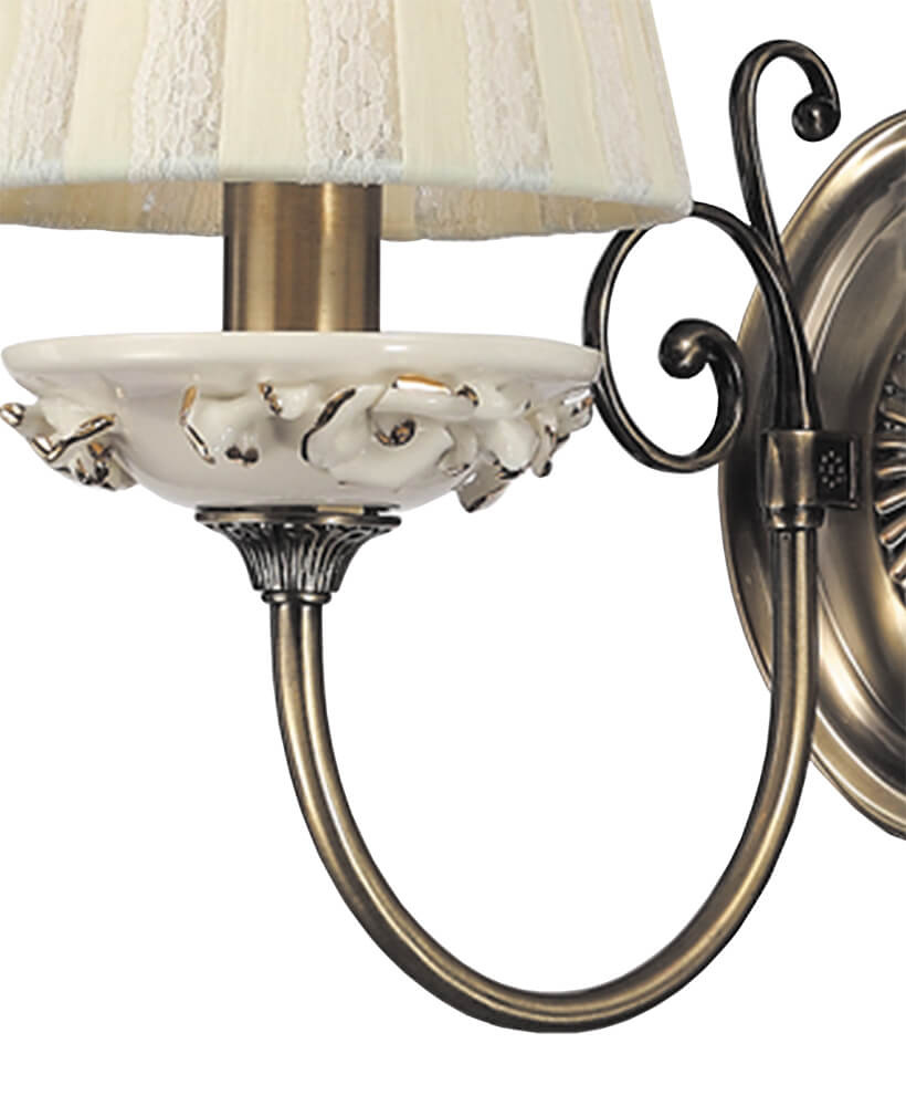 Перечислим технические характеристики Бра Lumien Hall Лорет W17034/2AB. Тип цоколя — E14. Общая мощность лампы — 120 Ватт. Высота люстры — 270 мм. Степень защиты — IP20, что обеспечивает защиту от проникновения предметов размером более 12 мм и защиту от капель воды, падающих под углом более 15 градусов. Бра Lumien Hall Лорет W17034/2AB — часть коллекции Лорет. Плафон люстры имеет форму конуса и выполнен в бежевом цвете.