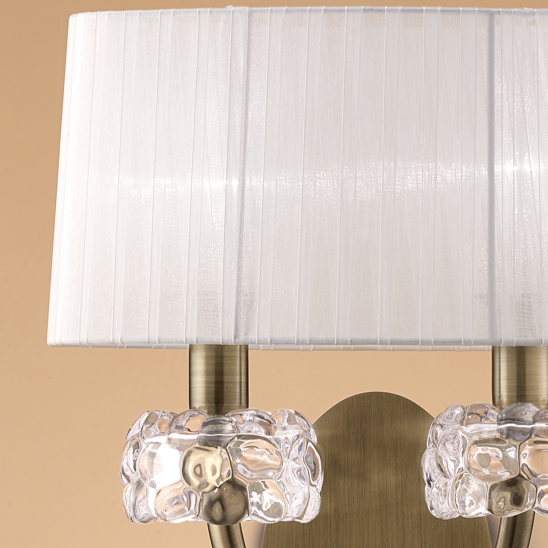 Перечислим технические характеристики Бра Mantra Loewe 4734. Тип цоколя — E14. Общая мощность лампы — 40 Ватт. Высота люстры — 230 мм. Степень защиты — IP20, что обеспечивает защиту от проникновения предметов размером более 12 мм и защиту от капель воды, падающих под углом более 15 градусов. Бра Mantra Loewe 4734 — часть коллекции Loewe Bronze. Плафон люстры имеет форму абажура и выполнен в белом цвете.