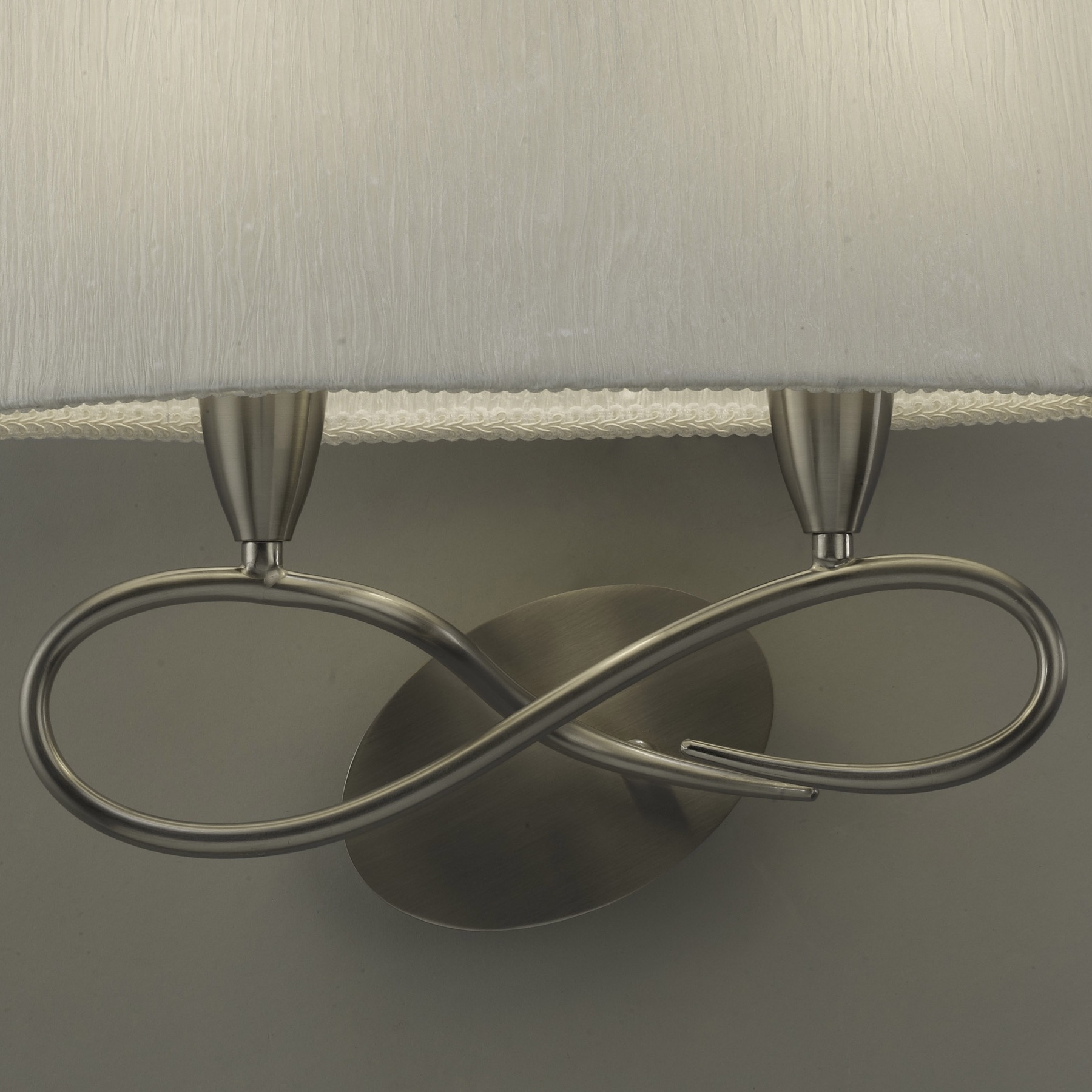Перечислим технические характеристики Бра Mantra Lua 3707. Тип цоколя — E27. Общая мощность лампы — 40 Ватт. Высота люстры — 380 мм. Степень защиты — IP20, что обеспечивает защиту от проникновения предметов размером более 12 мм и защиту от капель воды, падающих под углом более 15 градусов. Бра Mantra Lua 3707 — часть коллекции Lua Chrome. Плафон люстры имеет форму абажура и выполнен в белом цвете.