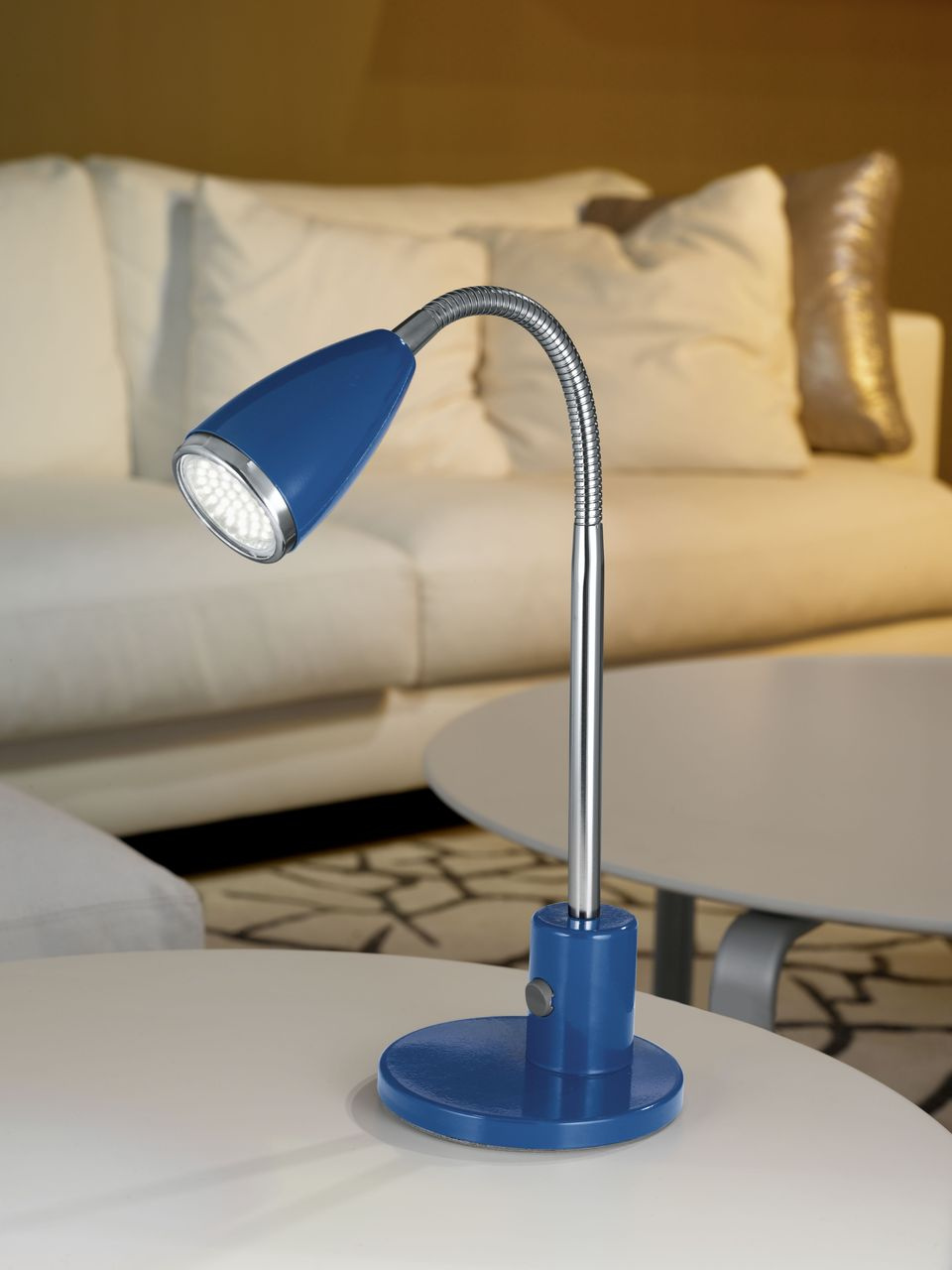 Перечислим технические характеристики настольной лампы Eglo Fox 92875. Тип цоколя — GU10. Общая мощность лампы — 3 Ватт. Высота люстры — 320 мм. Степень защиты — IP20, что обеспечивает защиту от проникновения предметов размером более 12 мм и защиту от капель воды, падающих под углом более 15 градусов. Настольная лампа Eglo Fox 92875 — часть коллекции Fox. Плафон люстры имеет форму конуса и выполнен в Синий цвете.