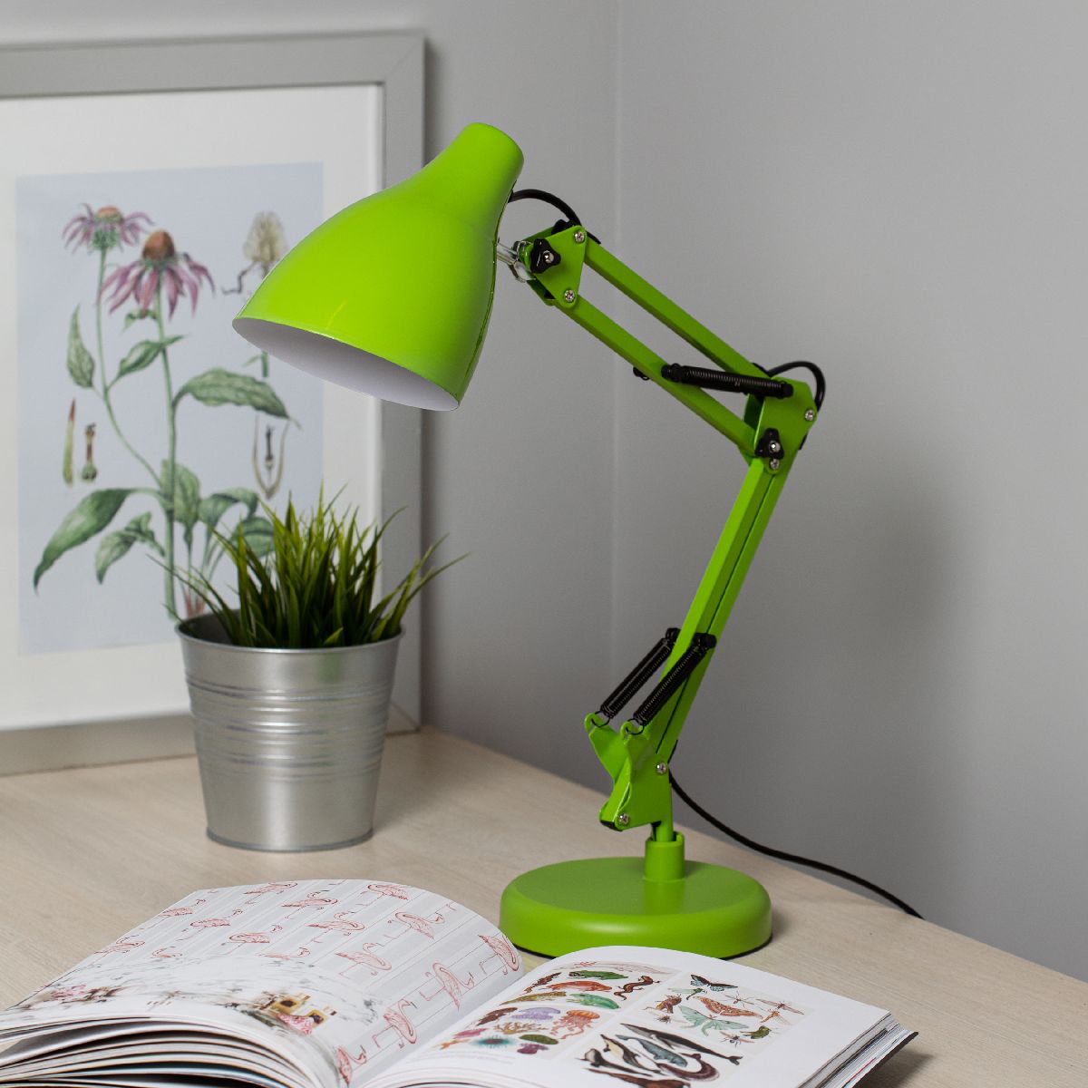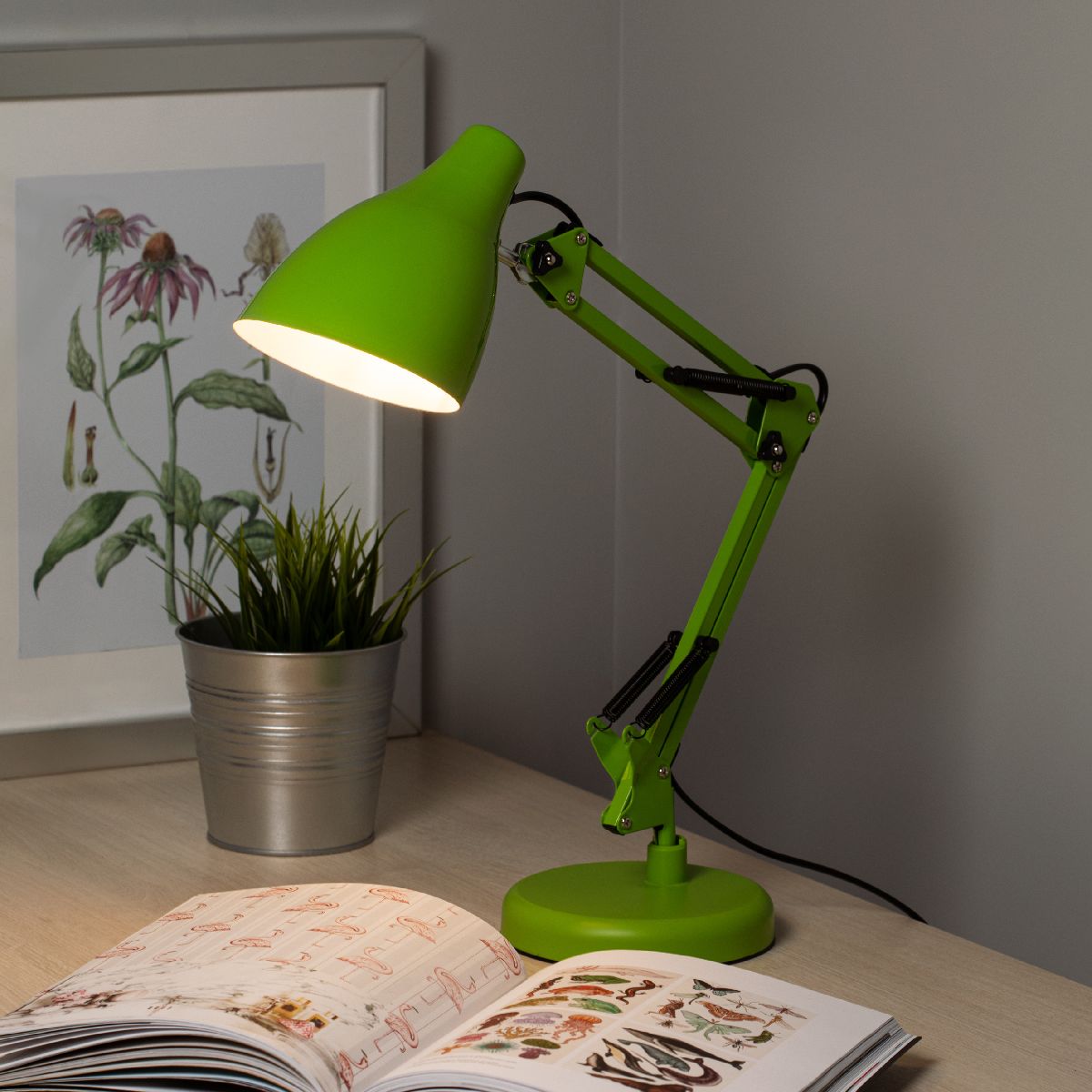 Перечислим технические характеристики настольной лампы Эра N-123-E27-40W-GR Б0052756. Тип цоколя — E27. Общая мощность лампы — 40 Ватт. Высота люстры — 550 мм. Степень защиты — IP20, что обеспечивает защиту от проникновения предметов размером более 12 мм и защиту от капель воды, падающих под углом более 15 градусов. Настольная лампа Эра N-123-E27-40W-GR Б0052756 — часть коллекции N-123. Плафон люстры имеет форму конуса и выполнен в зеленом цвете.
