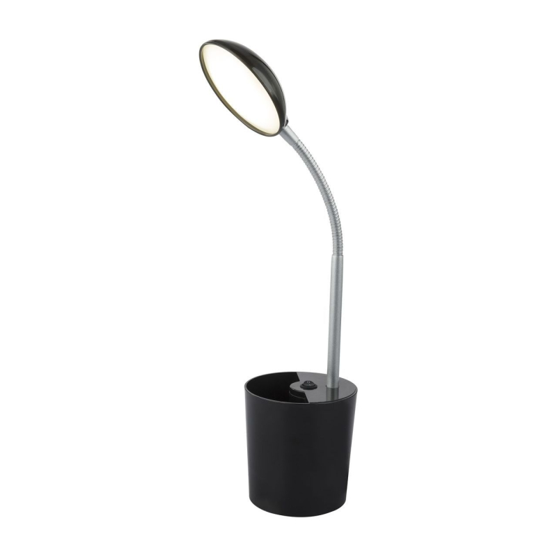 Перечислим технические характеристики настольной лампы Globo Cosmo 58201S. Тип цоколя — LED. Общая мощность лампы — 5 Ватт. Высота люстры — 490 мм. Степень защиты — IP20, что обеспечивает защиту от проникновения предметов размером более 12 мм и защиту от капель воды, падающих под углом более 15 градусов. Настольная лампа Globo Cosmo 58201S — часть коллекции Cosmo. Плафон люстры имеет форму круга и выполнен в черном цвете.