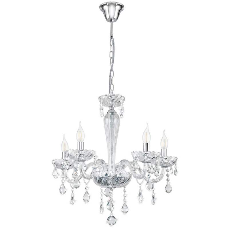 Перечислим технические характеристики подвесной люстры Eglo Paularo 39107. Тип цоколя — E14. Общая мощность лампы — 200 Ватт. Высота люстры — 1200 мм. Степень защиты — IP20, что обеспечивает защиту от проникновения предметов размером более 12 мм и защиту от капель воды, падающих под углом более 15 градусов. Подвесная люстра Eglo Paularo 39107 — часть коллекции Paularo. Плафон люстры имеет форму Без плафона и выполнен в цвете.