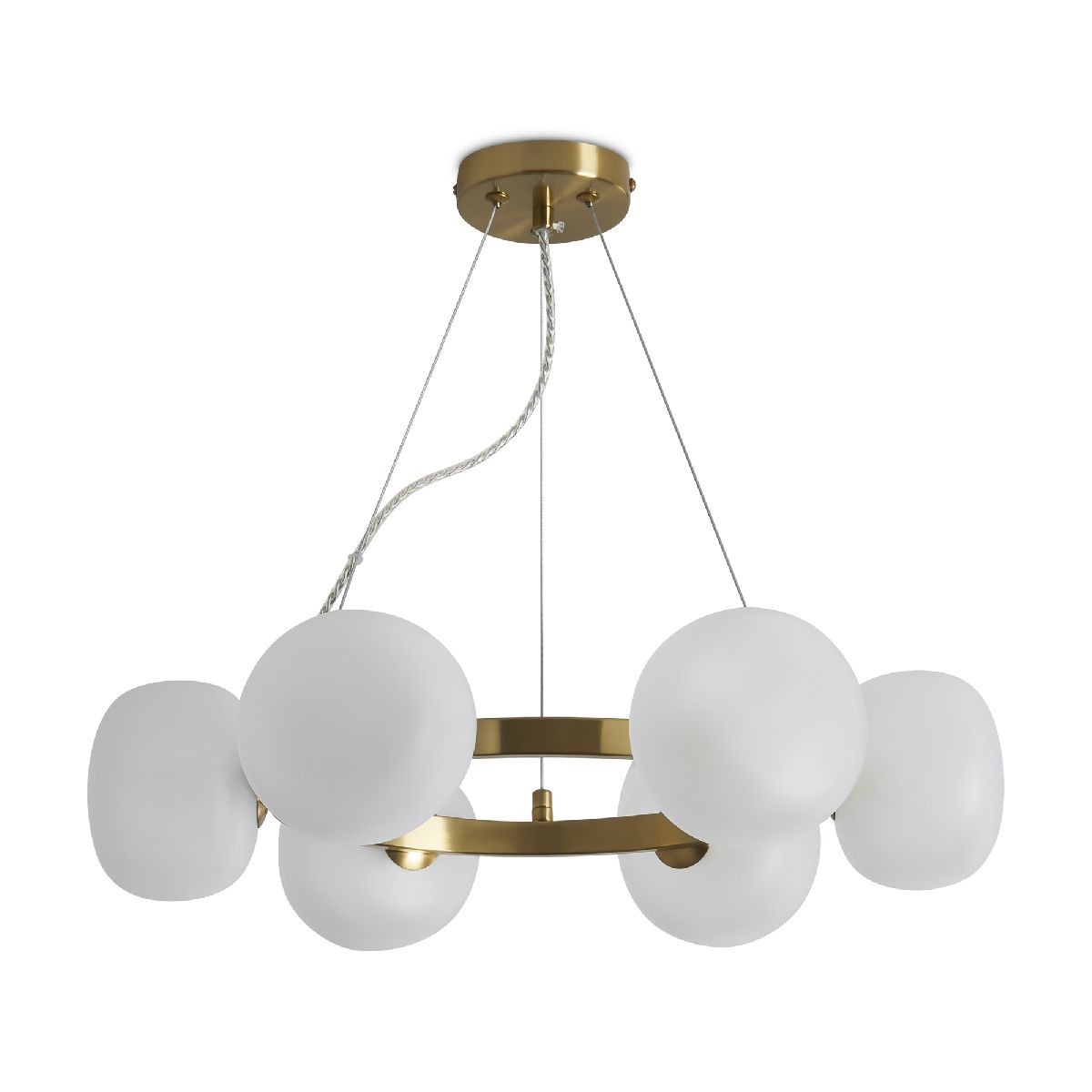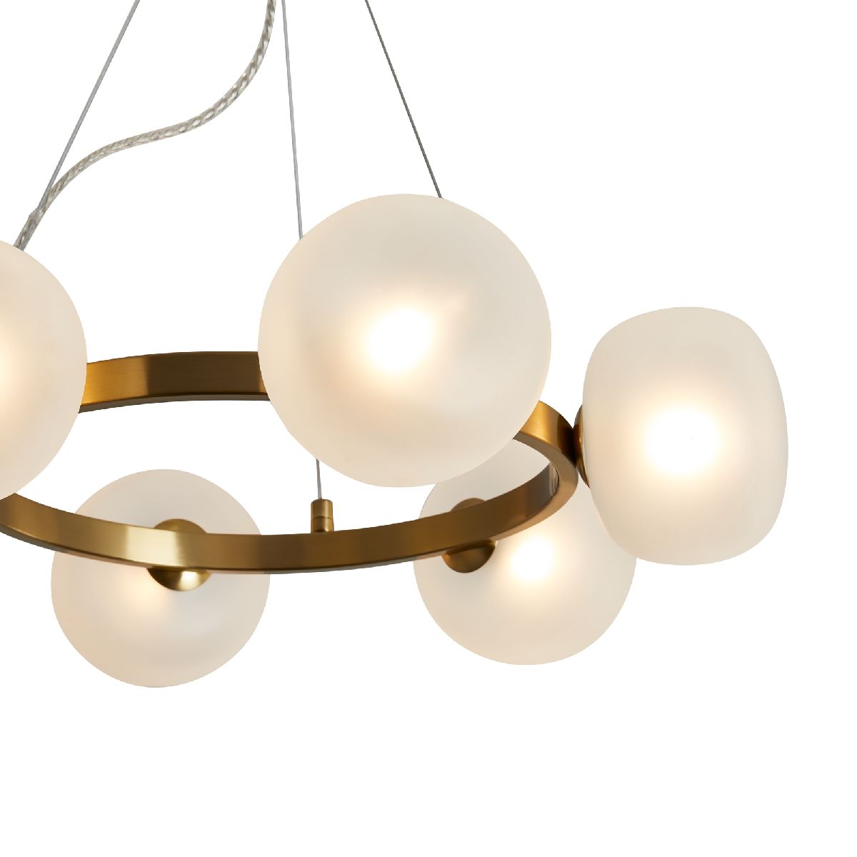 Перечислим технические характеристики подвесной люстры Freya Donuts FR5444PL-06BS. Тип цоколя — G9. Общая мощность лампы — 180 Ватт. Высота люстры — 1000 мм. Степень защиты — IP20, что обеспечивает защиту от проникновения предметов размером более 12 мм и защиту от капель воды, падающих под углом более 15 градусов. Подвесная люстра Freya Donuts FR5444PL-06BS — часть коллекции Donuts. Плафон люстры имеет форму шара и выполнен в белом цвете.