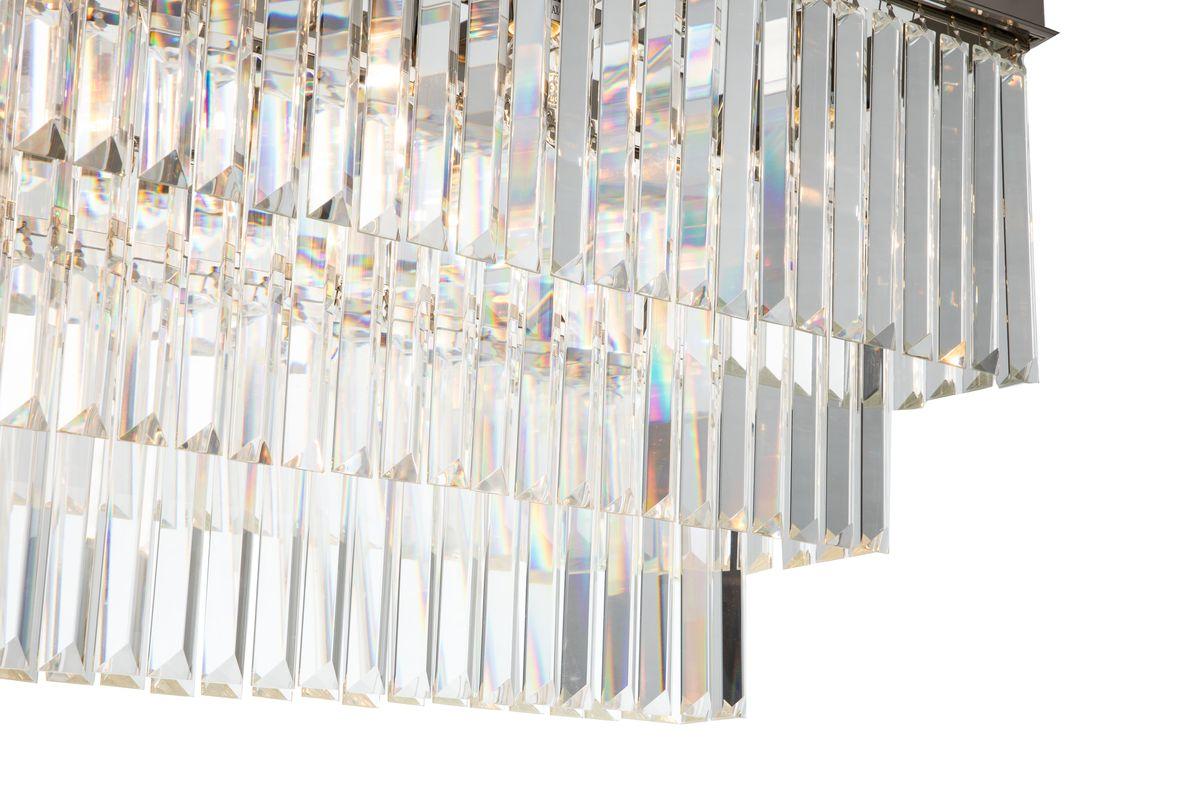 Перечислим технические характеристики подвесной люстры iLamp Triumph 6119-800 Nickel. Тип цоколя — E14. Общая мощность лампы — 600 Ватт. Высота люстры — 550 мм. Степень защиты — IP20, что обеспечивает защиту от проникновения предметов размером более 12 мм и защиту от капель воды, падающих под углом более 15 градусов. Подвесная люстра iLamp Triumph 6119-800 Nickel — часть коллекции Triumph. Плафон люстры имеет форму Прямоугольный и выполнен в прозрачном цвете.