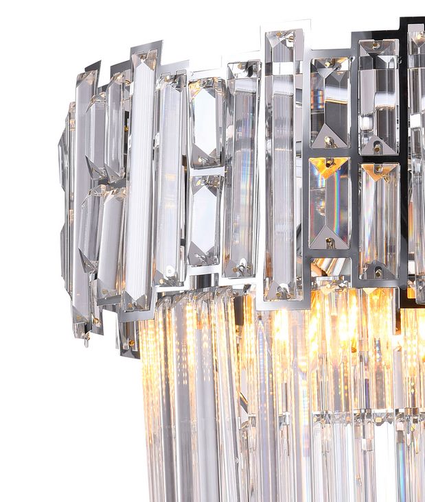 Перечислим технические характеристики подвесной люстры Natali Kovaltseva ROSSANA 81425/8C CHROME. Тип цоколя — E14. Общая мощность лампы — 320 Ватт. Высота люстры — 430 мм. Степень защиты — IP20, что обеспечивает защиту от проникновения предметов размером более 12 мм и защиту от капель воды, падающих под углом более 15 градусов. Подвесная люстра Natali Kovaltseva ROSSANA 81425/8C CHROME — часть коллекции ROSSANA. Плафон люстры имеет форму Декоративный и выполнен в прозрачном цвете.