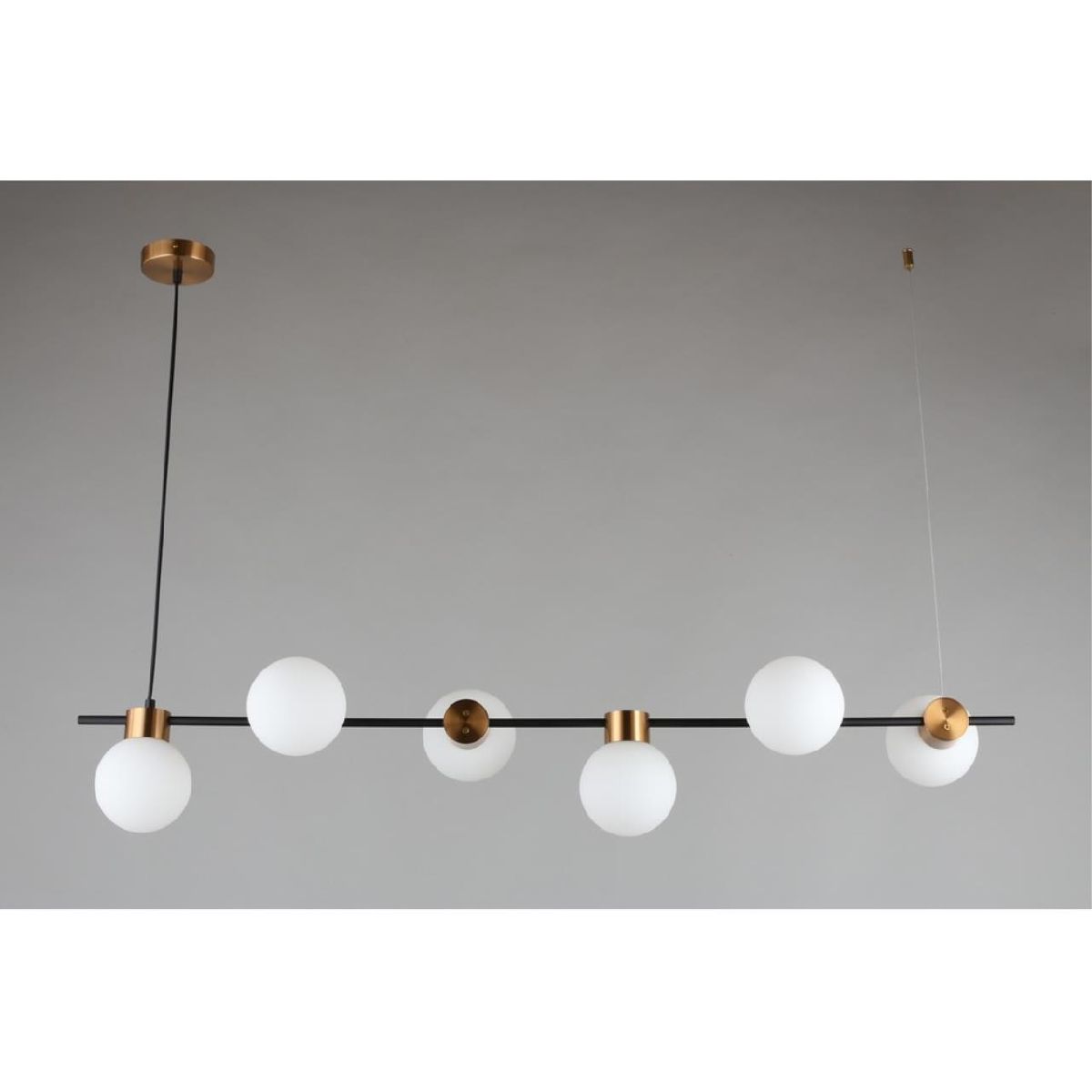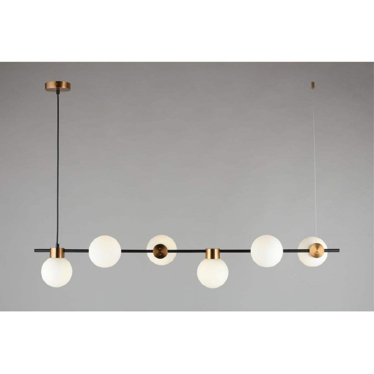 Перечислим технические характеристики подвесной люстры Omnilux Nembro OML-59503-06. Тип цоколя — G9. Общая мощность лампы — 150 Ватт. Высота люстры — 850 мм. Степень защиты — IP20, что обеспечивает защиту от проникновения предметов размером более 12 мм и защиту от капель воды, падающих под углом более 15 градусов. Подвесная люстра Omnilux Nembro OML-59503-06 — часть коллекции NEMBRO. Плафон люстры имеет форму шара и выполнен в белом цвете.
