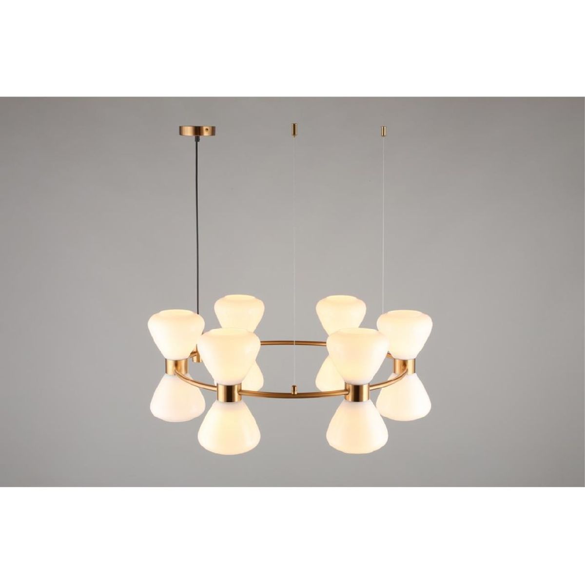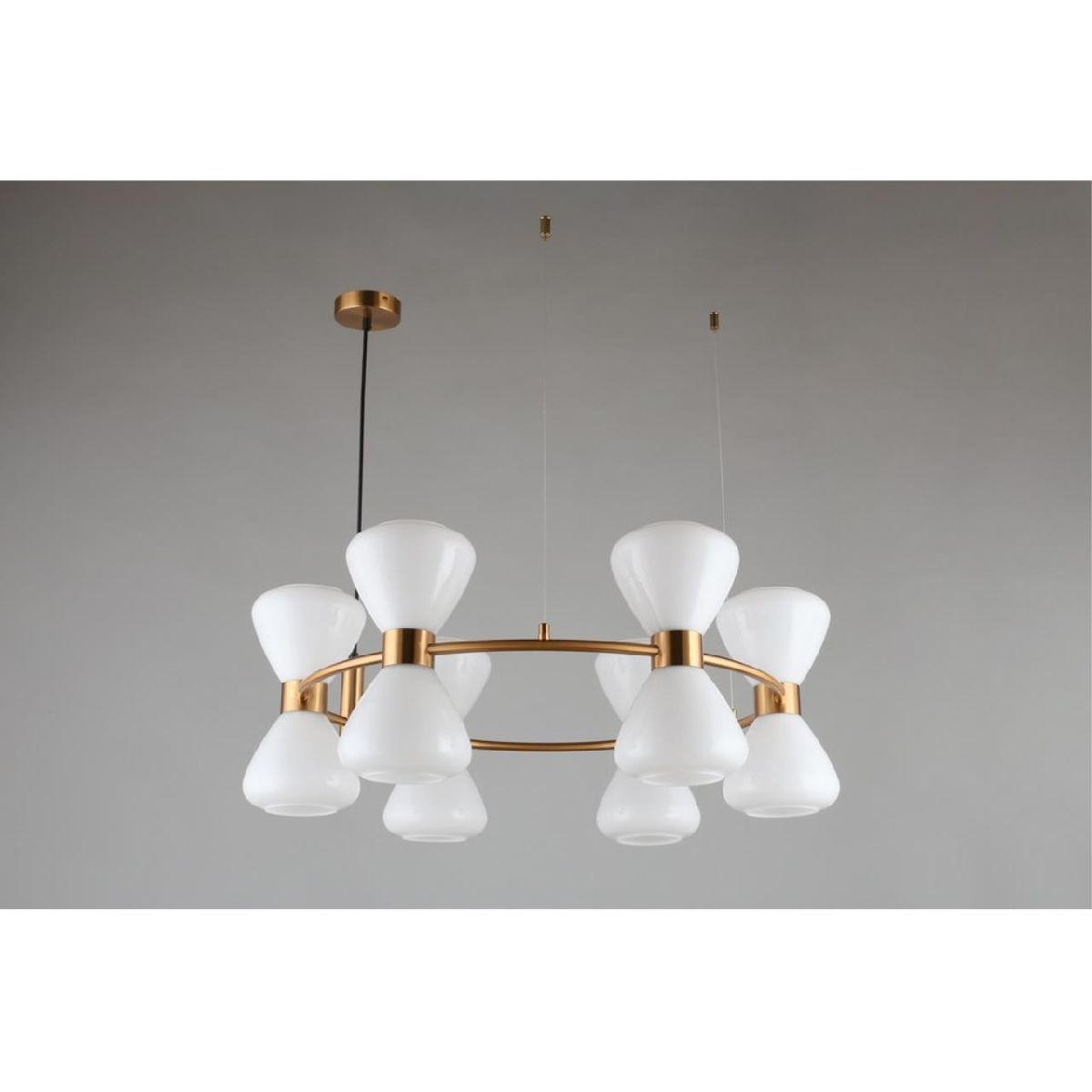 Перечислим технические характеристики подвесной люстры Omnilux Trevasco OML-59603-12. Тип цоколя — E27. Общая мощность лампы — 480 Ватт. Высота люстры — 950 мм. Степень защиты — IP20, что обеспечивает защиту от проникновения предметов размером более 12 мм и защиту от капель воды, падающих под углом более 15 градусов. Подвесная люстра Omnilux Trevasco OML-59603-12 — часть коллекции Trevasco. Плафон люстры имеет форму конуса и выполнен в белом цвете.