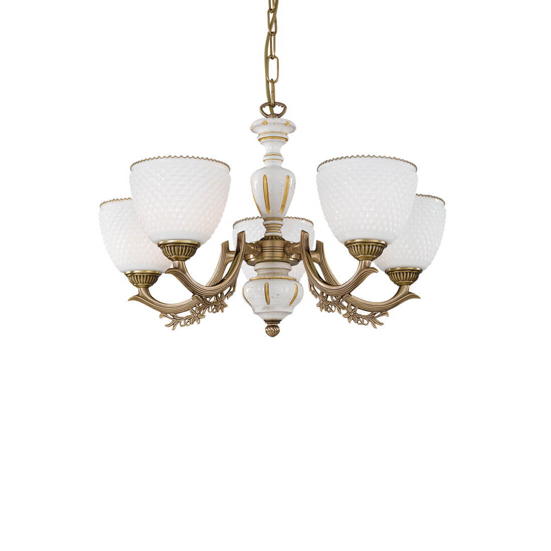 Перечислим технические характеристики подвесной люстры Reccagni Angelo L 8656/5. Тип цоколя — E27. Общая мощность лампы — 300 Ватт. Высота люстры — 340 мм. Степень защиты — IP20, что обеспечивает защиту от проникновения предметов размером более 12 мм и защиту от капель воды, падающих под углом более 15 градусов. Подвесная люстра Reccagni Angelo L 8656/5 — часть коллекции rosa 8656. Плафон люстры имеет форму овала и выполнен в белом цвете.