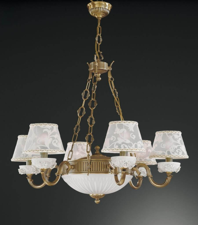 Перечислим технические характеристики подвесной люстры Reccagni Angelo L 9001/6+2. Тип цоколя — E14. Общая мощность лампы — 480 Ватт. Высота люстры — 690 мм. Степень защиты — IP20, что обеспечивает защиту от проникновения предметов размером более 12 мм и защиту от капель воды, падающих под углом более 15 градусов. Подвесная люстра Reccagni Angelo L 9001/6+2 — часть коллекции 9001. Плафон люстры имеет форму конуса и выполнен в белом цвете.