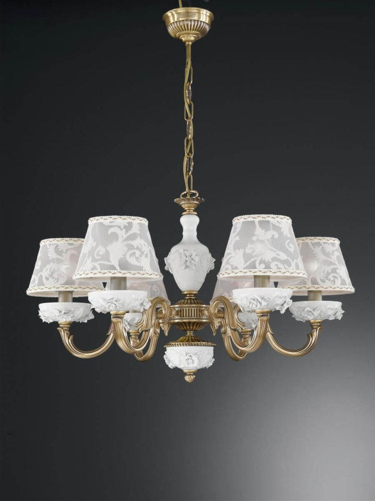 Перечислим технические характеристики подвесной люстры Reccagni Angelo L 9001/6. Тип цоколя — E14. Общая мощность лампы — 360 Ватт. Высота люстры — 410 мм. Степень защиты — IP20, что обеспечивает защиту от проникновения предметов размером более 12 мм и защиту от капель воды, падающих под углом более 15 градусов. Подвесная люстра Reccagni Angelo L 9001/6 — часть коллекции 9001. Плафон люстры имеет форму конуса и выполнен в белом цвете.