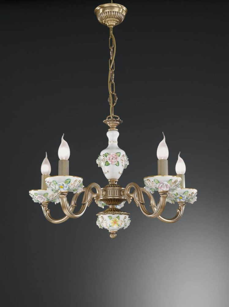 Перечислим технические характеристики подвесной люстры Reccagni Angelo L 9010/5. Тип цоколя — E14. Общая мощность лампы — 300 Ватт. Высота люстры — 410 мм. Степень защиты — IP20, что обеспечивает защиту от проникновения предметов размером более 12 мм и защиту от капель воды, падающих под углом более 15 градусов. Подвесная люстра Reccagni Angelo L 9010/5 — часть коллекции 9010. Плафон люстры имеет форму Без плафона и выполнен в цвете.