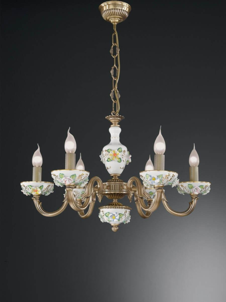 Перечислим технические характеристики подвесной люстры Reccagni Angelo L 9010/6. Тип цоколя — E14. Общая мощность лампы — 360 Ватт. Высота люстры — 410 мм. Степень защиты — IP20, что обеспечивает защиту от проникновения предметов размером более 12 мм и защиту от капель воды, падающих под углом более 15 градусов. Подвесная люстра Reccagni Angelo L 9010/6 — часть коллекции 9010. Плафон люстры имеет форму Без плафона и выполнен в цвете.