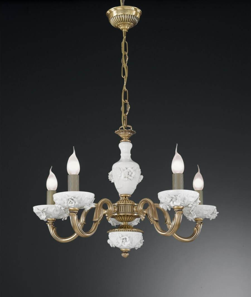 Перечислим технические характеристики подвесной люстры Reccagni Angelo L 9011/5. Тип цоколя — E27. Общая мощность лампы — 300 Ватт. Высота люстры — 410 мм. Степень защиты — IP20, что обеспечивает защиту от проникновения предметов размером более 12 мм и защиту от капель воды, падающих под углом более 15 градусов. Подвесная люстра Reccagni Angelo L 9011/5 — часть коллекции 9011. Плафон люстры имеет форму Без плафона и выполнен в цвете.