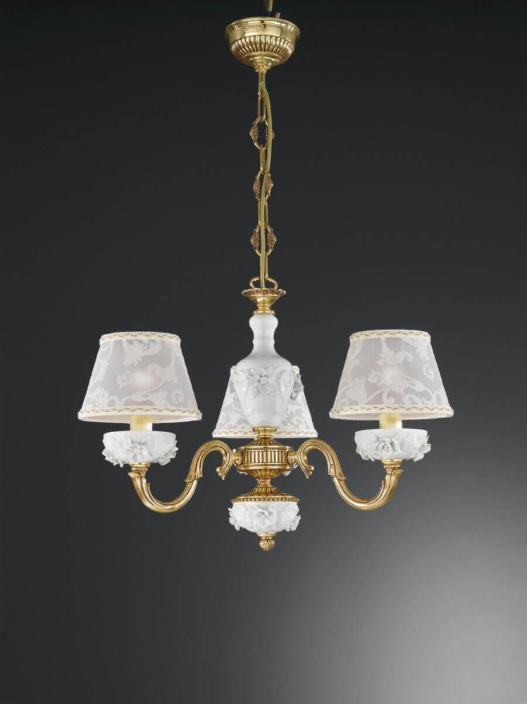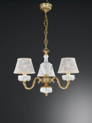 Перечислим технические характеристики подвесной люстры Reccagni Angelo L 9101/3. Тип цоколя — E14. Общая мощность лампы — 180 Ватт. Высота люстры — 390 мм. Степень защиты — IP20, что обеспечивает защиту от проникновения предметов размером более 12 мм и защиту от капель воды, падающих под углом более 15 градусов. Подвесная люстра Reccagni Angelo L 9101/3 — часть коллекции 9101. Плафон люстры имеет форму конуса и выполнен в белом цвете.