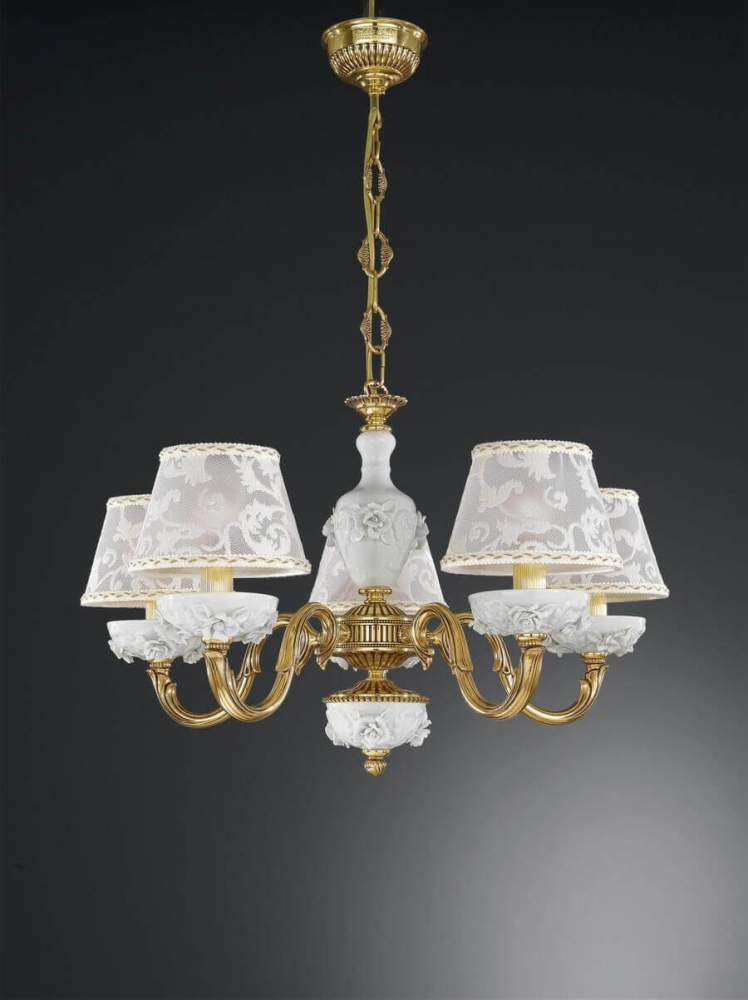 Перечислим технические характеристики подвесной люстры Reccagni Angelo L 9101/5. Тип цоколя — E14. Общая мощность лампы — 300 Ватт. Высота люстры — 410 мм. Степень защиты — IP20, что обеспечивает защиту от проникновения предметов размером более 12 мм и защиту от капель воды, падающих под углом более 15 градусов. Подвесная люстра Reccagni Angelo L 9101/5 — часть коллекции 9101. Плафон люстры имеет форму конуса и выполнен в белом цвете.