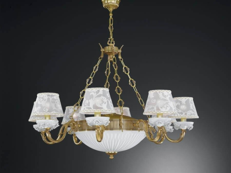 Перечислим технические характеристики подвесной люстры Reccagni Angelo L 9101/8+3. Тип цоколя — E14. Общая мощность лампы — 660 Ватт. Высота люстры — 720 мм. Степень защиты — IP20, что обеспечивает защиту от проникновения предметов размером более 12 мм и защиту от капель воды, падающих под углом более 15 градусов. Подвесная люстра Reccagni Angelo L 9101/8+3 — часть коллекции 9101. Плафон люстры имеет форму конуса и выполнен в белом цвете.