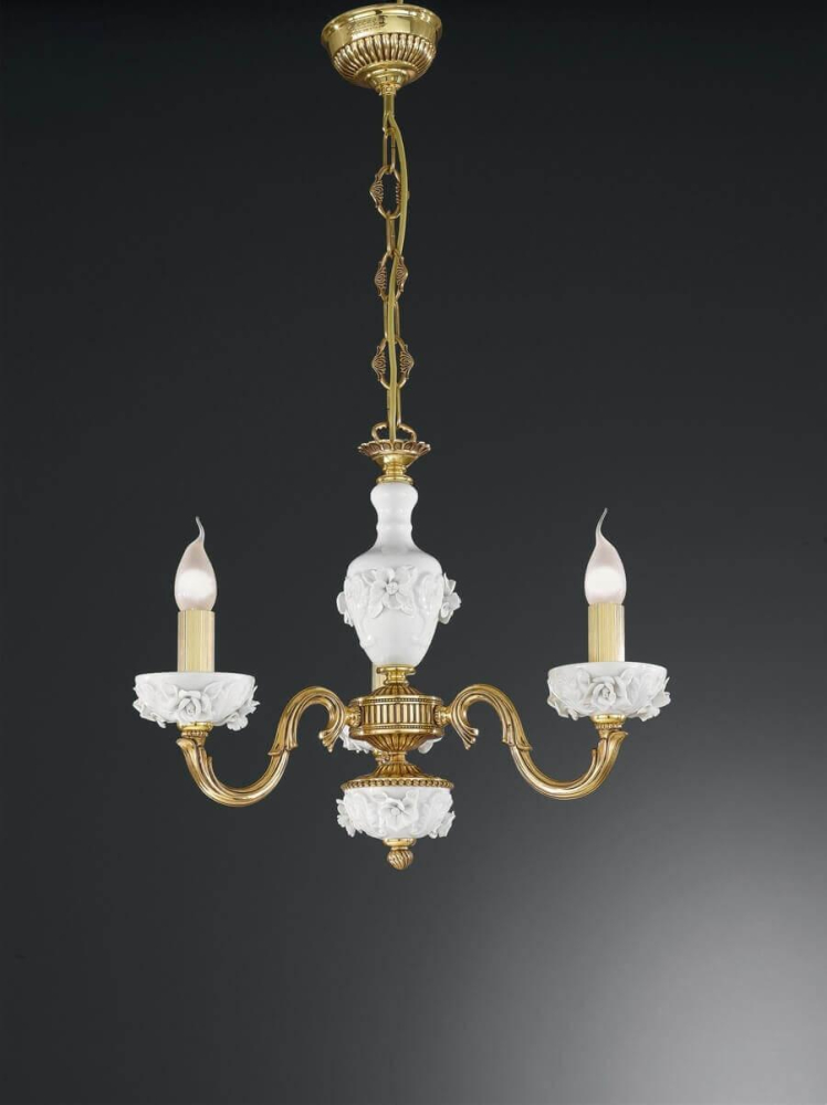 Перечислим технические характеристики подвесной люстры Reccagni Angelo L 9111/3. Тип цоколя — E14. Общая мощность лампы — 180 Ватт. Высота люстры — 390 мм. Степень защиты — IP20, что обеспечивает защиту от проникновения предметов размером более 12 мм и защиту от капель воды, падающих под углом более 15 градусов. Подвесная люстра Reccagni Angelo L 9111/3 — часть коллекции 9111. Плафон люстры имеет форму Без плафона и выполнен в цвете.