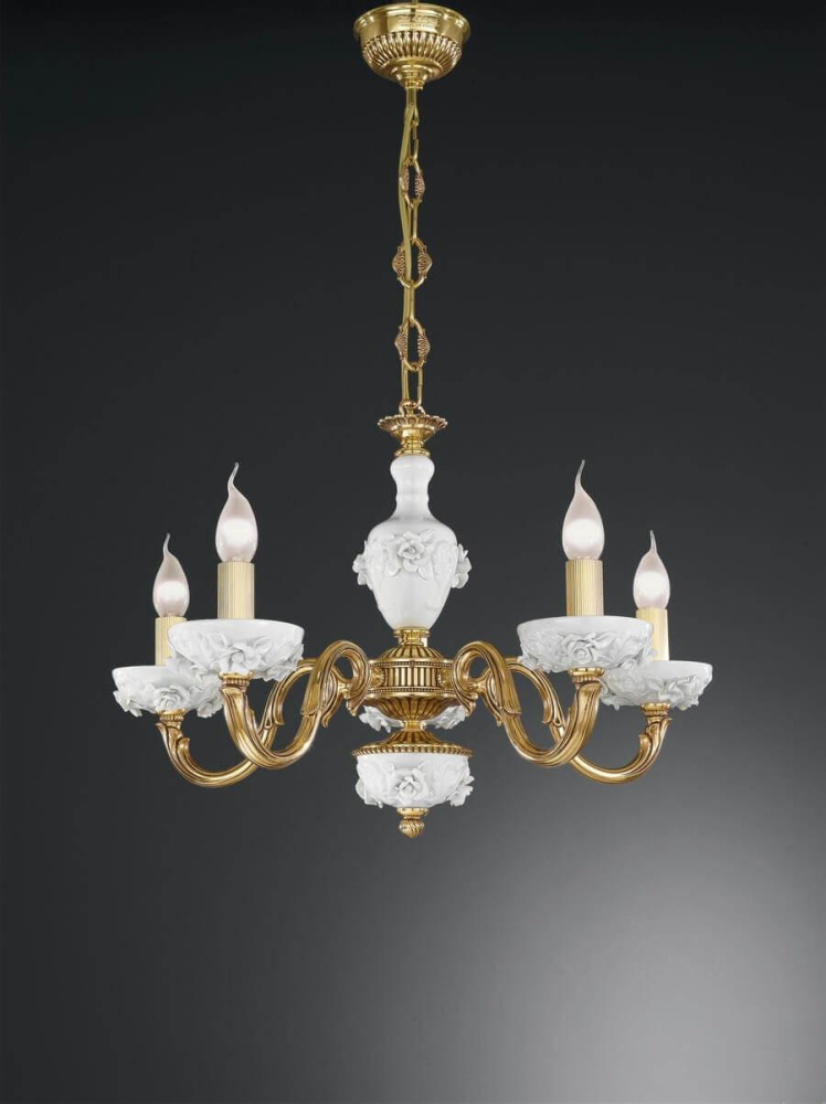 Перечислим технические характеристики подвесной люстры Reccagni Angelo L 9111/5. Тип цоколя — E14. Общая мощность лампы — 300 Ватт. Высота люстры — 410 мм. Степень защиты — IP20, что обеспечивает защиту от проникновения предметов размером более 12 мм и защиту от капель воды, падающих под углом более 15 градусов. Подвесная люстра Reccagni Angelo L 9111/5 — часть коллекции 9111. Плафон люстры имеет форму Без плафона и выполнен в цвете.
