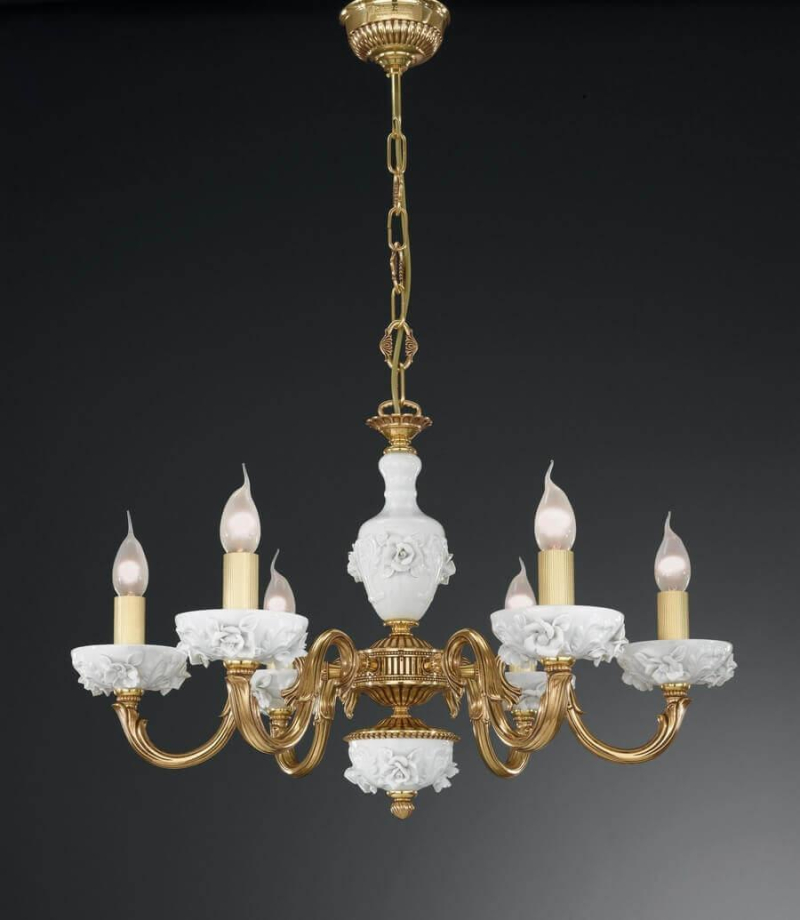 Перечислим технические характеристики подвесной люстры Reccagni Angelo L 9111/6. Тип цоколя — E14. Общая мощность лампы — 360 Ватт. Высота люстры — 410 мм. Степень защиты — IP20, что обеспечивает защиту от проникновения предметов размером более 12 мм и защиту от капель воды, падающих под углом более 15 градусов. Подвесная люстра Reccagni Angelo L 9111/6 — часть коллекции 9111. Плафон люстры имеет форму Без плафона и выполнен в цвете.