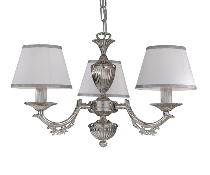 Перечислим технические характеристики подвесной люстры Reccagni Angelo L 9830/3. Тип цоколя — E27. Общая мощность лампы — 180 Ватт. Высота люстры — 320 мм. Степень защиты — IP20, что обеспечивает защиту от проникновения предметов размером более 12 мм и защиту от капель воды, падающих под углом более 15 градусов. Подвесная люстра Reccagni Angelo L 9830/3 — часть коллекции 9830. Плафон люстры имеет форму конуса и выполнен в белом цвете.