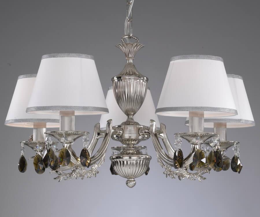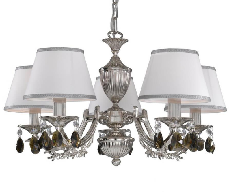 Перечислим технические характеристики подвесной люстры Reccagni Angelo L 9831/5. Тип цоколя — E27. Общая мощность лампы — 300 Ватт. Высота люстры — 320 мм. Степень защиты — IP20, что обеспечивает защиту от проникновения предметов размером более 12 мм и защиту от капель воды, падающих под углом более 15 градусов. Подвесная люстра Reccagni Angelo L 9831/5 — часть коллекции 9831. Плафон люстры имеет форму конуса и выполнен в белом цвете.