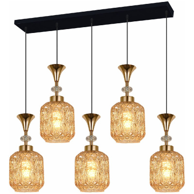 Перечислим технические характеристики подвесной люстры Reluce 02003-0.9-05L AMBER. Тип цоколя — E27. Общая мощность лампы — 200 Ватт. Высота люстры — 1000 мм. Степень защиты — IP20, что обеспечивает защиту от проникновения предметов размером более 12 мм и защиту от капель воды, падающих под углом более 15 градусов. Подвесная люстра Reluce 02003-0.9-05L AMBER — часть коллекции . Плафон люстры имеет форму цилиндра и выполнен в коричневом цвете.