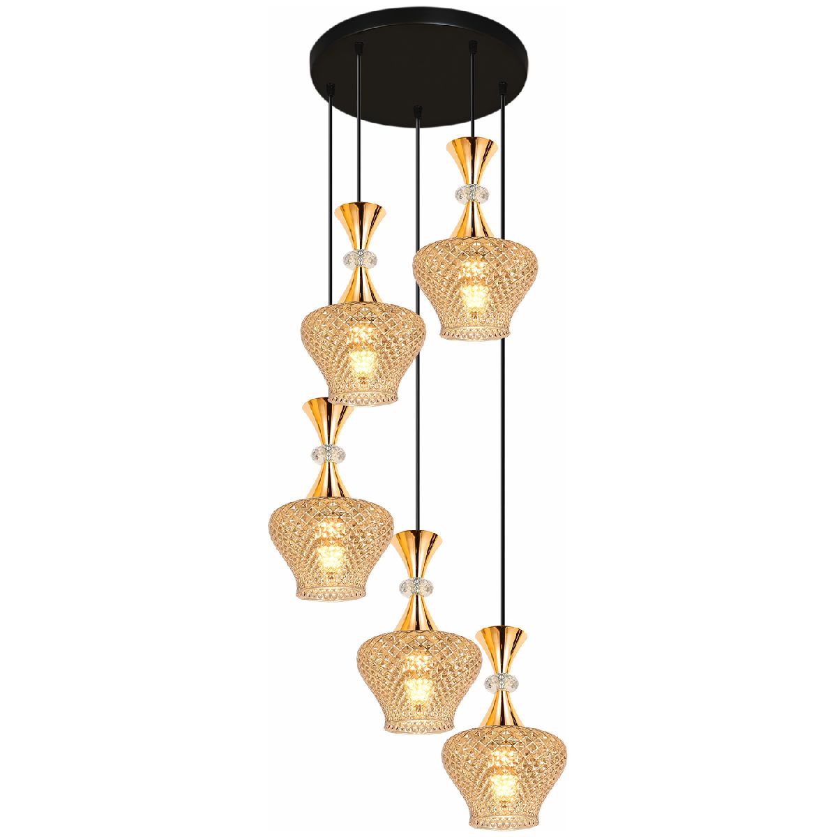 Перечислим технические характеристики подвесной люстры Reluce 09004-0.9-05 AMBER. Тип цоколя — E27. Общая мощность лампы — 200 Ватт. Высота люстры — 1300 мм. Степень защиты — IP20, что обеспечивает защиту от проникновения предметов размером более 12 мм и защиту от капель воды, падающих под углом более 15 градусов. Подвесная люстра Reluce 09004-0.9-05 AMBER — часть коллекции . Плафон люстры имеет форму конуса и выполнен в коричневом цвете.