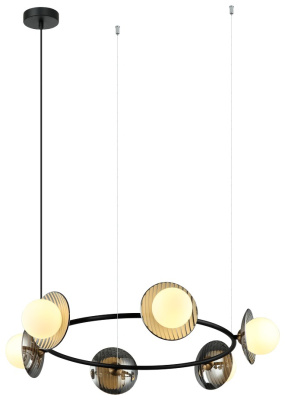 Перечислим технические характеристики подвесной люстры Velante 221-023-06. Тип цоколя — G9. Общая мощность лампы — 240 Ватт. Высота люстры — 910 мм. Степень защиты — IP20, что обеспечивает защиту от проникновения предметов размером более 12 мм и защиту от капель воды, падающих под углом более 15 градусов. Подвесная люстра Velante 221-023-06 — часть коллекции . Плафон люстры имеет форму шара и выполнен в белом цвете.