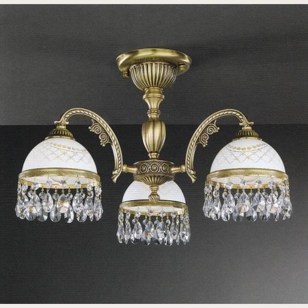 Перечислим технические характеристики потолочной люстры Reccagni Angelo PL 7020/3. Тип цоколя — E27. Общая мощность лампы — 180 Ватт. Высота люстры — 410 мм. Степень защиты — IP20, что обеспечивает защиту от проникновения предметов размером более 12 мм и защиту от капель воды, падающих под углом более 15 градусов. Потолочная люстра Reccagni Angelo PL 7020/3 — часть коллекции rosa 7000. Плафон люстры имеет форму полукруга и выполнен в белом цвете.