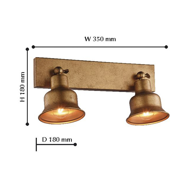 Перечислим технические характеристики спота Favourite Clochette 2024-2W. Тип цоколя — E27. Общая мощность лампы — 120 Ватт. Высота люстры — 180 мм. Степень защиты — IP20, что обеспечивает защиту от проникновения предметов размером более 12 мм и защиту от капель воды, падающих под углом более 15 градусов. Спот Favourite Clochette 2024-2W — часть коллекции Clochette. Плафон люстры имеет форму и выполнен в Золото цвете.