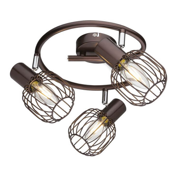 Перечислим технические характеристики спота Globo Akin 54801-3. Тип цоколя — E14. Общая мощность лампы — 120 Ватт. Высота люстры — 150 мм. Степень защиты — IP20, что обеспечивает защиту от проникновения предметов размером более 12 мм и защиту от капель воды, падающих под углом более 15 градусов. Спот Globo Akin 54801-3 — часть коллекции Akin. Плафон люстры имеет форму овала и выполнен в коричневом цвете.