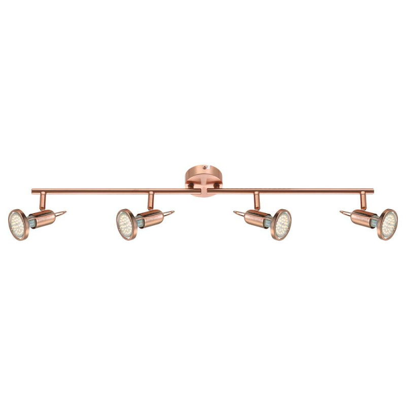 Перечислим технические характеристики спота Globo Anne 54383-4. Тип цоколя — GU10. Общая мощность лампы — 12 Ватт. Высота люстры — 130 мм. Степень защиты — IP20, что обеспечивает защиту от проникновения предметов размером более 12 мм и защиту от капель воды, падающих под углом более 15 градусов. Спот Globo Anne 54383-4 — часть коллекции Anne. Плафон люстры имеет форму круга и выполнен в медного цвете.