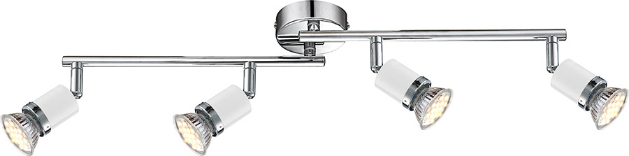 Перечислим технические характеристики спота Globo Fina 57996-4. Тип цоколя — GU10. Общая мощность лампы — 12 Ватт. Высота люстры — 160 мм. Степень защиты — IP20, что обеспечивает защиту от проникновения предметов размером более 12 мм и защиту от капель воды, падающих под углом более 15 градусов. Спот Globo Fina 57996-4 — часть коллекции Fina. Плафон люстры имеет форму Без плафона и выполнен в цвете.