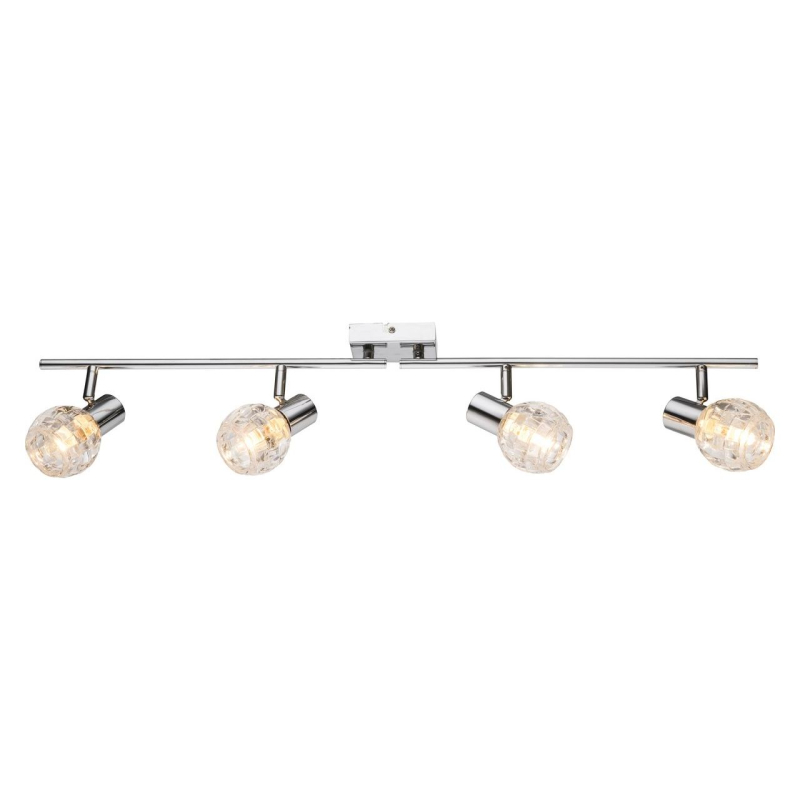 Перечислим технические характеристики спота Globo Keith I 541007-4. Тип цоколя — E14. Общая мощность лампы — 160 Ватт. Высота люстры — 180 мм. Степень защиты — IP20, что обеспечивает защиту от проникновения предметов размером более 12 мм и защиту от капель воды, падающих под углом более 15 градусов. Спот Globo Keith I 541007-4 — часть коллекции Keith I. Плафон люстры имеет форму круга и выполнен в прозрачном цвете.