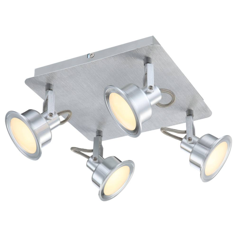 Перечислим технические характеристики спота Globo Lindsey 56954-4. Тип цоколя — LED. Общая мощность лампы — 20 Ватт. Высота люстры — 165 мм. Степень защиты — IP20, что обеспечивает защиту от проникновения предметов размером более 12 мм и защиту от капель воды, падающих под углом более 15 градусов. Спот Globo Lindsey 56954-4 — часть коллекции Lindsey. Плафон люстры имеет форму круга и выполнен в белом цвете.
