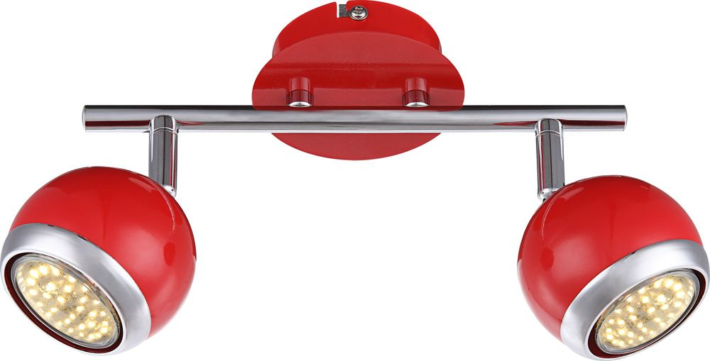 Перечислим технические характеристики спота Globo Oman 57885-2. Тип цоколя — GU10. Общая мощность лампы — 6 Ватт. Высота люстры — 250 мм. Степень защиты — IP20, что обеспечивает защиту от проникновения предметов размером более 12 мм и защиту от капель воды, падающих под углом более 15 градусов. Спот Globo Oman 57885-2 — часть коллекции Oman. Плафон люстры имеет форму круга и выполнен в красном цвете.