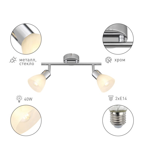 Перечислим технические характеристики спота Rivoli Keila 7051-702 Б0054680. Тип цоколя — E14. Общая мощность лампы — 80 Ватт. Высота люстры — 122 мм. Степень защиты — IP20, что обеспечивает защиту от проникновения предметов размером более 12 мм и защиту от капель воды, падающих под углом более 15 градусов. Спот Rivoli Keila 7051-702 Б0054680 — часть коллекции Keila. Плафон люстры имеет форму Трапеция и выполнен в белом цвете.