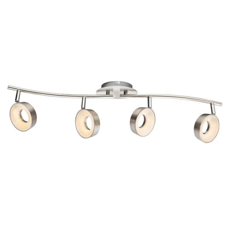 Перечислим технические характеристики светодиодного спота Globo Abril 56132-4. Тип цоколя — LED. Общая мощность лампы — 18 Ватт. Высота люстры — 190 мм. Степень защиты — IP20, что обеспечивает защиту от проникновения предметов размером более 12 мм и защиту от капель воды, падающих под углом более 15 градусов. Светодиодный спот Globo Abril 56132-4 — часть коллекции Abril. Плафон люстры имеет форму и выполнен в белом цвете.