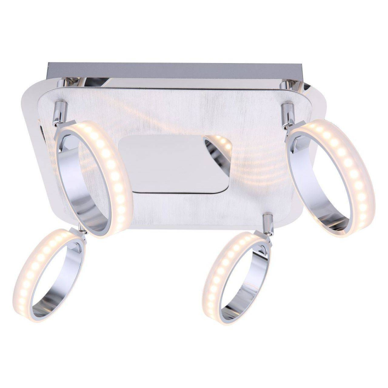 Перечислим технические характеристики светодиодного спота Globo Idaho 56043-4. Тип цоколя — LED. Общая мощность лампы — 20 Ватт. Высота люстры — 190 мм. Степень защиты — IP20, что обеспечивает защиту от проникновения предметов размером более 12 мм и защиту от капель воды, падающих под углом более 15 градусов. Светодиодный спот Globo Idaho 56043-4 — часть коллекции Idaho. Плафон люстры имеет форму кольца и выполнен в белом цвете.