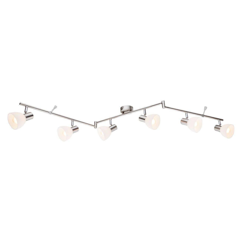 Перечислим технические характеристики Трековая система Globo Enibas 54918-6. Тип цоколя — E14. Общая мощность лампы — 240 Ватт. Высота люстры — 175 мм. Степень защиты — IP20, что обеспечивает защиту от проникновения предметов размером более 12 мм и защиту от капель воды, падающих под углом более 15 градусов. Трековая система Globo Enibas 54918-6 — часть коллекции Enibas. Плафон люстры имеет форму овала и выполнен в Матовый никель цвете.