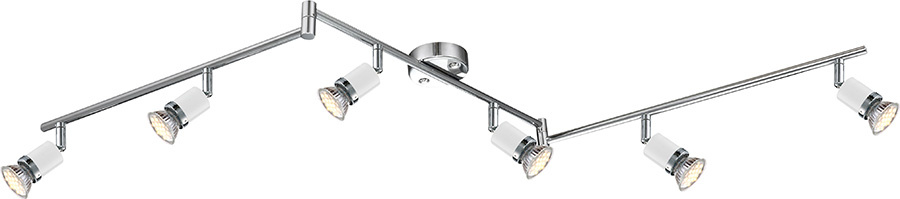 Перечислим технические характеристики Трековая система Globo Fina 57996-6. Тип цоколя — GU10. Общая мощность лампы — 18 Ватт. Высота люстры — 180 мм. Степень защиты — IP20, что обеспечивает защиту от проникновения предметов размером более 12 мм и защиту от капель воды, падающих под углом более 15 градусов. Трековая система Globo Fina 57996-6 — часть коллекции Fina. Плафон люстры имеет форму Без плафона и выполнен в Хром цвете.