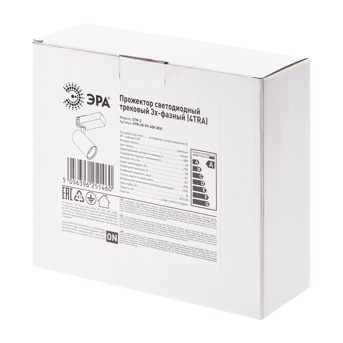 Перечислим технические характеристики трекового светильника ЭРА STR-30-99-40K-B30 Б0049791. Тип цоколя — LED. Общая мощность лампы — 30 Ватт. Высота люстры — 150 мм. Степень защиты — IP40, что обеспечивает защиту от проникновения предметов размером более 12 мм и защиту от капель воды, падающих под углом более 15 градусов. Трековый светильник ЭРА STR-30-99-40K-B30 Б0049791 — часть коллекции STR-30. Плафон люстры имеет форму цилиндра и выполнен в черном цвете.