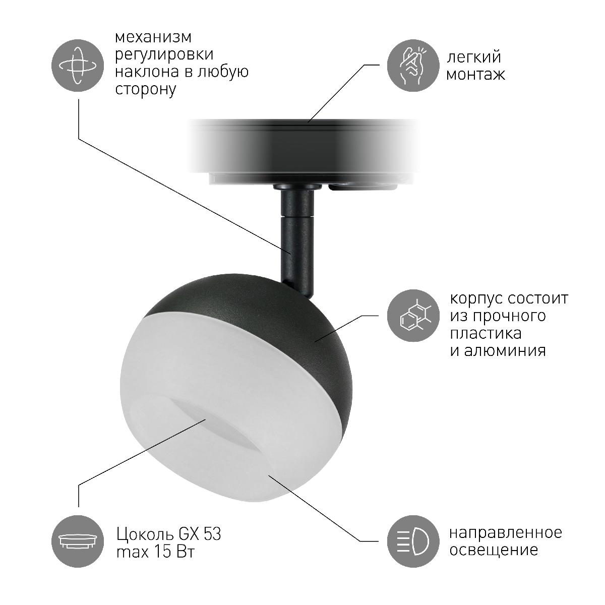 Перечислим технические характеристики трекового светильника Эра TR46 - GX53 BK Б0054153. Тип цоколя — GX53. Общая мощность лампы — 15 Ватт. Высота люстры — 140 мм. Степень защиты — IP20, что обеспечивает защиту от проникновения предметов размером более 12 мм и защиту от капель воды, падающих под углом более 15 градусов. Трековый светильник Эра TR46 - GX53 BK Б0054153 — часть коллекции TR46. Плафон люстры имеет форму шара и выполнен в белом цвете.
