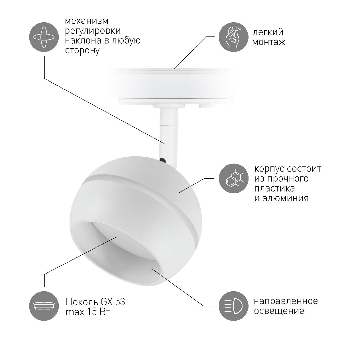 Перечислим технические характеристики трекового светильника Эра TR47 - GX53 WH Б0054155. Тип цоколя — GX53. Общая мощность лампы — 15 Ватт. Высота люстры — 142 мм. Степень защиты — IP20, что обеспечивает защиту от проникновения предметов размером более 12 мм и защиту от капель воды, падающих под углом более 15 градусов. Трековый светильник Эра TR47 - GX53 WH Б0054155 — часть коллекции TR47. Плафон люстры имеет форму шара и выполнен в белом цвете.