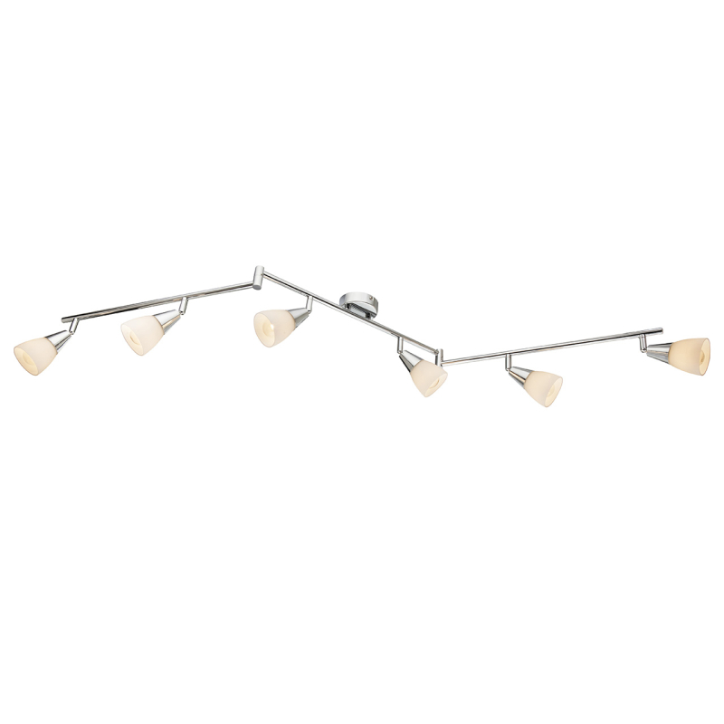 Перечислим технические характеристики трекового светильника Globo Tadeus 54919-6. Тип цоколя — E14. Общая мощность лампы — 240 Ватт. Высота люстры — 195 мм. Степень защиты — IP20, что обеспечивает защиту от проникновения предметов размером более 12 мм и защиту от капель воды, падающих под углом более 15 градусов. Трековый светильник Globo Tadeus 54919-6 — часть коллекции Tadeus. Плафон люстры имеет форму овала и выполнен в белом цвете.