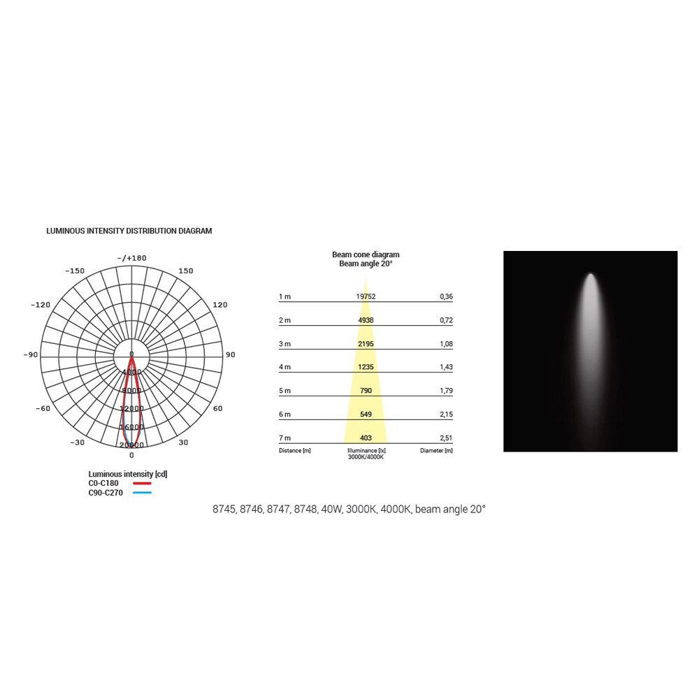 Перечислим технические характеристики трекового светильника Nowodvorski Nea Led 8746. Тип цоколя — LED. Общая мощность лампы — 40 Ватт. Высота люстры — 205 мм. Степень защиты — IP20, что обеспечивает защиту от проникновения предметов размером более 12 мм и защиту от капель воды, падающих под углом более 15 градусов. Трековый светильник Nowodvorski Nea Led 8746 — часть коллекции Nea Led. Плафон люстры имеет форму цилиндра и выполнен в черном цвете.