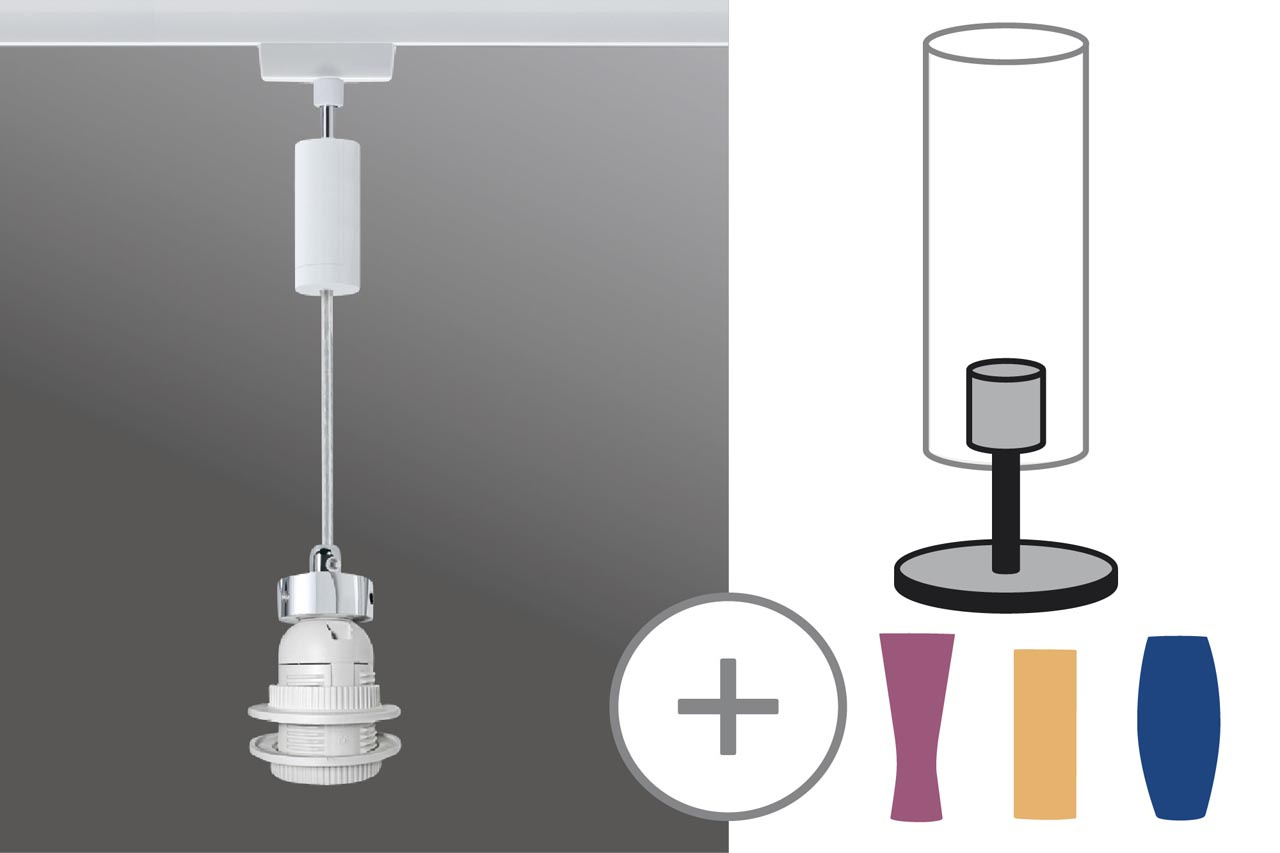 Перечислим технические характеристики трекового светильника Paulmann URail 2Easy 97652. Тип цоколя — E27. Общая мощность лампы — 5 Ватт. Высота люстры — 1650 мм. Степень защиты — IP20, что обеспечивает защиту от проникновения предметов размером более 12 мм и защиту от капель воды, падающих под углом более 15 градусов. Трековый светильник Paulmann URail 2Easy 97652 — часть коллекции Urail 2Easy. Плафон люстры имеет форму Без плафона и выполнен в цвете.